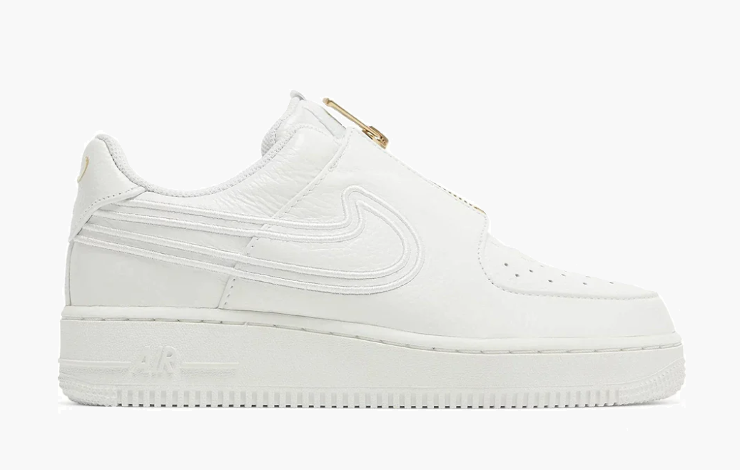 The Serena Williams Air Force 1 – Summit White delivers a refined and elegant take on the retro silhouette. Tumbled white leather is utilized on the upper, secured with a gold-zipper shroud and accented with a tonal embroidered Swoosh. Serena’s signature is inscribed in gold thread on the heel tab, while the athlete’s championship dates are embroidered on the tongue. The sneaker rests on a matching white rubber cupsole with encapsulated Air-sole cushioning in the heel.