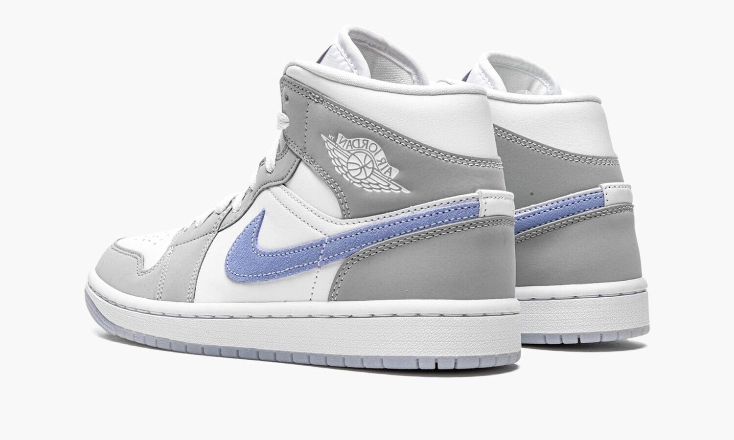 The Women’s Air Jordan 1 Mid “Wolf Grey/Aluminum” is a women’s exclusive look for Michael Jordan’s iconic first signature shoe. Interestingly, the “Wolf Grey/Aluminum” colorway is reminiscent of the white-and-grey color block of the Dior x Air Jordan 1 from 2020, one of the most coveted Air Jordan releases of all time. Like Dior’s high fashion-inflicted take on the retro basketball shoe, the “Wolf Grey/Aluminum” features white leather on the perforated toe, mid-panel, and collar. Contrasting grey leather detailing highlights the look of the forefoot, eyelets, collar, and heel. Unlike the Dior x Air Jordan 1, the “Wolf Grey/Aluminum” is constructed with a blue suede Swoosh on either side. A white “Wings” graphic adorns the collar and a low-contrast, grey Jumpman logo sits above “Air” branding on the white nylon tongue.