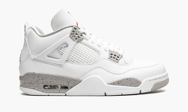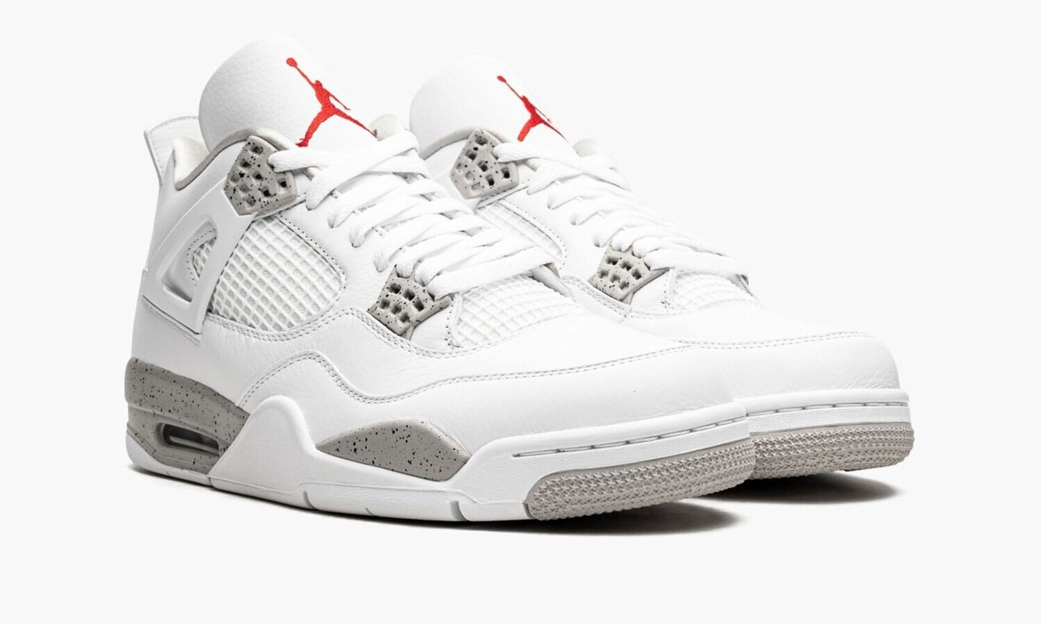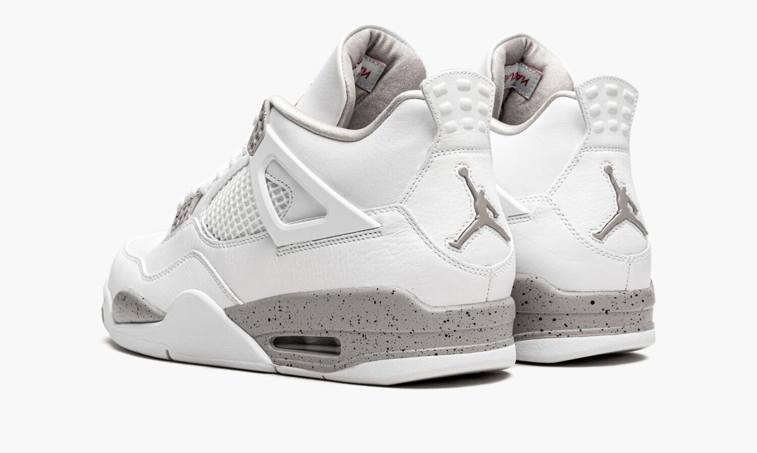 The Air Jordan 4 Retro White Oreo features a white leather and mesh upper with hits of Tech Grey on its eyelets and midsole. From there, a red Jumpman logo is embroidered on the tongue, adding a pop of color to the neutral-toned design.