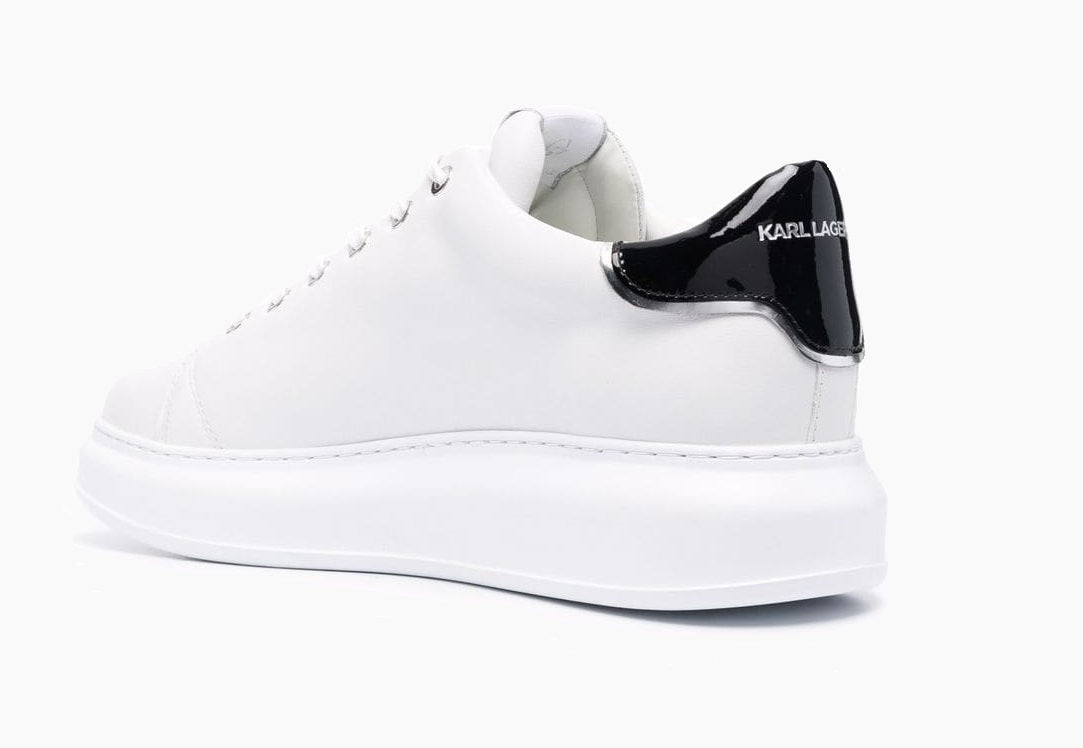 Karl Lagerfeld’s Rue St Guillaume low-top sneakers are detailed with the brand’s headquarters in silver-tone logo lettering. Produced from smooth white leather, they feature a contrasting black heel counter and central lace-up closure.