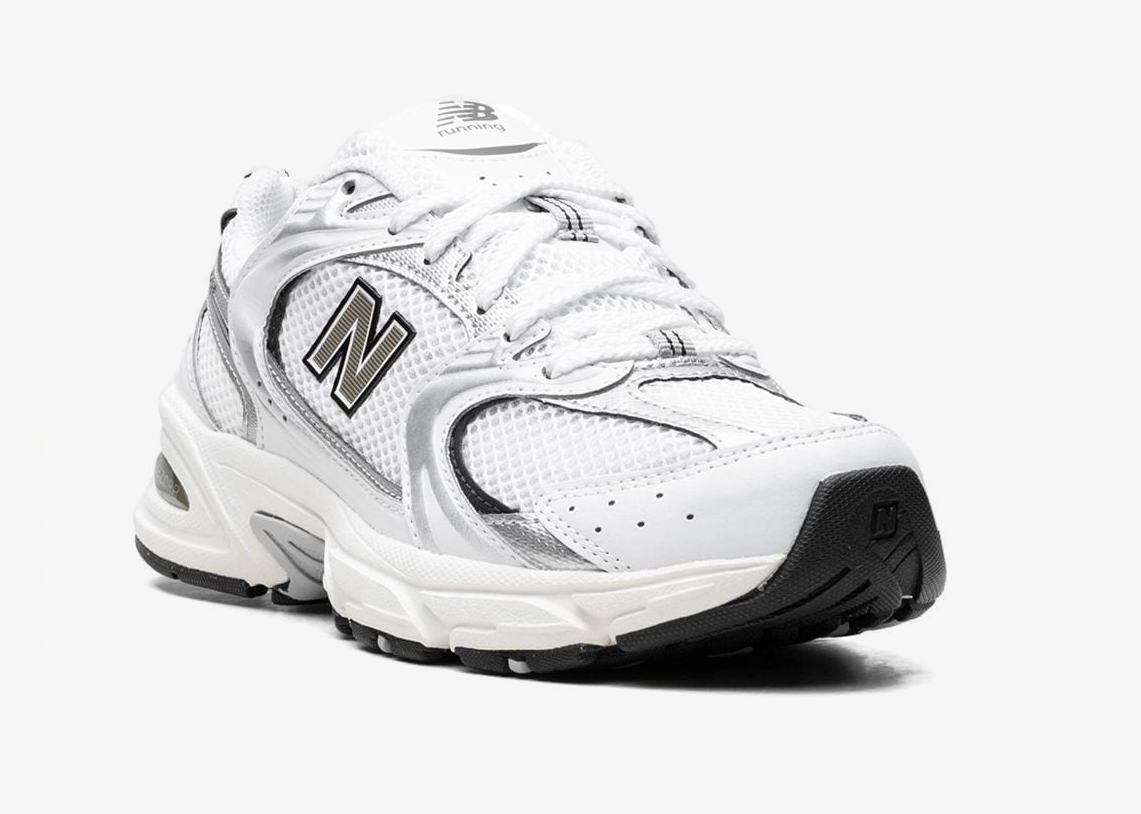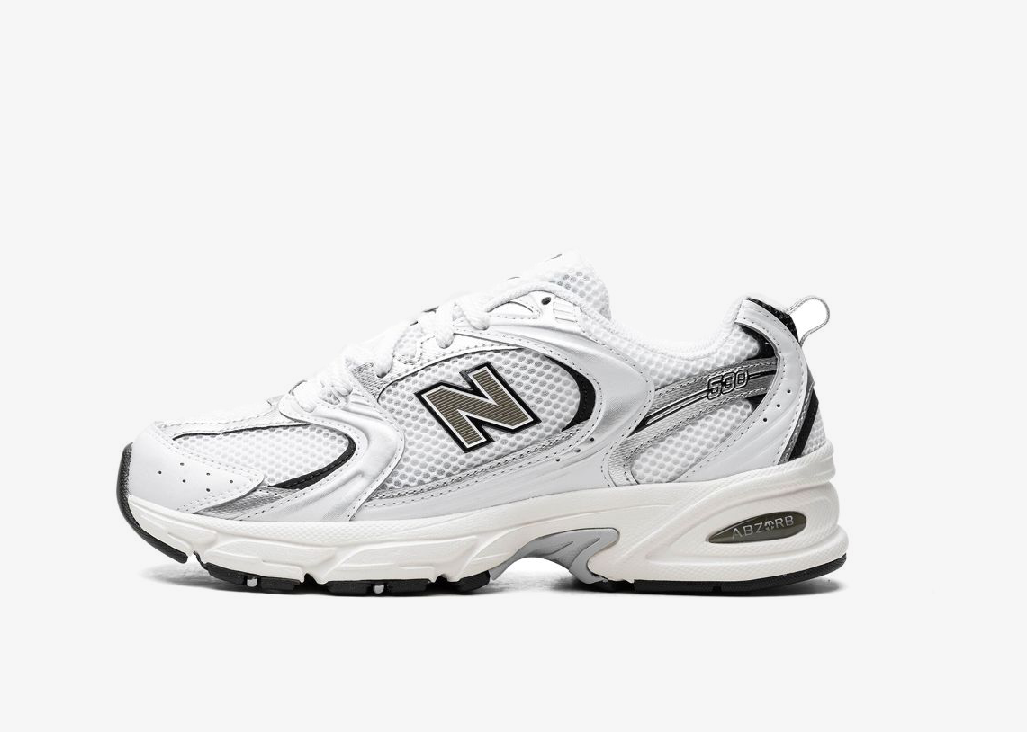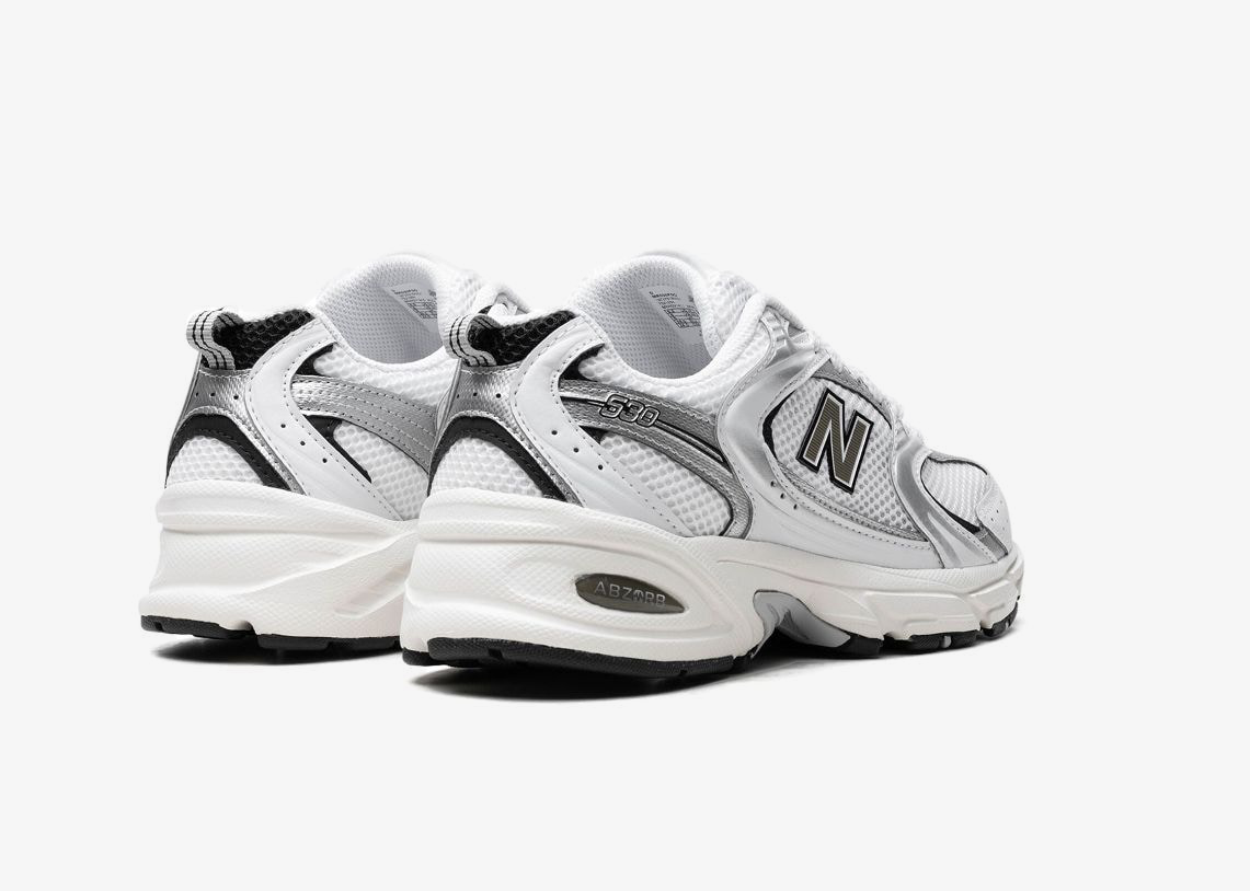 New Balance’s 530 sneakers are back – this time, in a white hue with navy blue and silver accents. This pair has a low-top silhouette, constructed with mesh panels for breathability, and is enhanced with an ‘N’ logo on the sides. Underneath, a signature ABZORB® midsole brings it better cushioning.