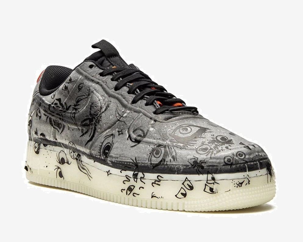 Part of Nike’s “Halloween Pack” these Air Force 1 Experimental sneakers stand out thanks to the spooky eye graphics all over. They appear in a black, grey and white colour scheme and feature a glow-in-the-dark upper and outsole.