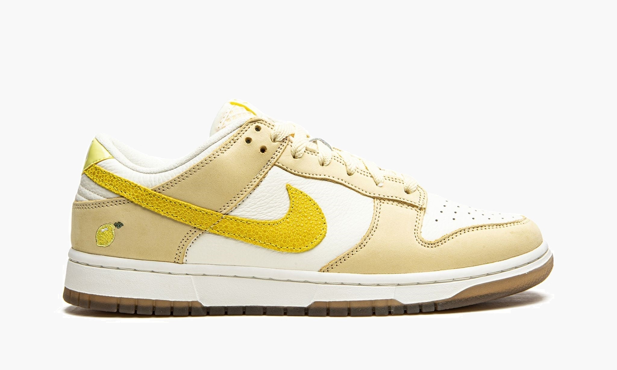 While lemonade has existed since ancient times, one of the first commercialized versions of the beverage debuted in Paris during the 1600s. Made of sparkling water, lemon juice and honey, the drink quickly became a hit across the world. In celebration of that history, this edition of the Dunk Low features a citrus-infused motif, with textured leather that resembles the peel of a lemon. Fittingly fruity hues—like Lemon Drop, Opti Yellow and Light Zitron—combine with neutral hits of sail and white complete the makeup